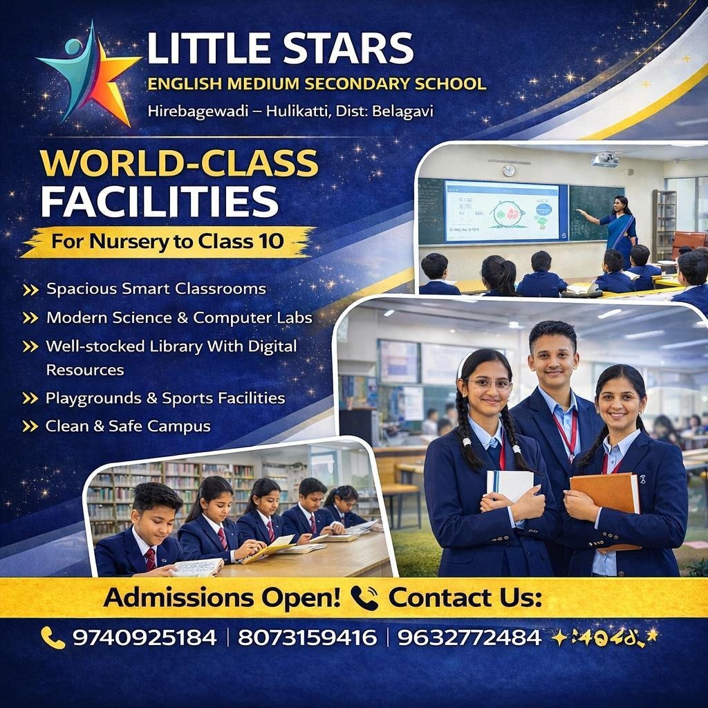 Little Stars English Medium Secondary School (LSEMS) is a nurturing, future-focused institution dedicated to shaping confident learners and responsible global citizens. Founded in 2012 under Spoorti Education Society (R), Bailhongal, our school combines traditional values with modern teaching practices to provide a safe, vibrant, and inspiring environment where every child can thrive.